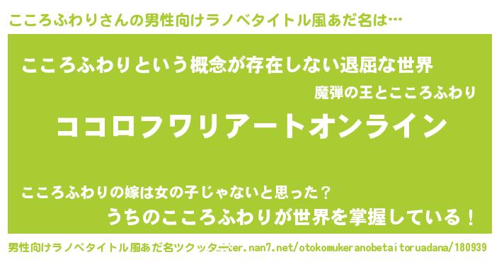 | 胡散臭い通販商品みたいなあだ名 | 『億万長者になれる霊験あらたかなお札…その名も「こころふわり」』 |