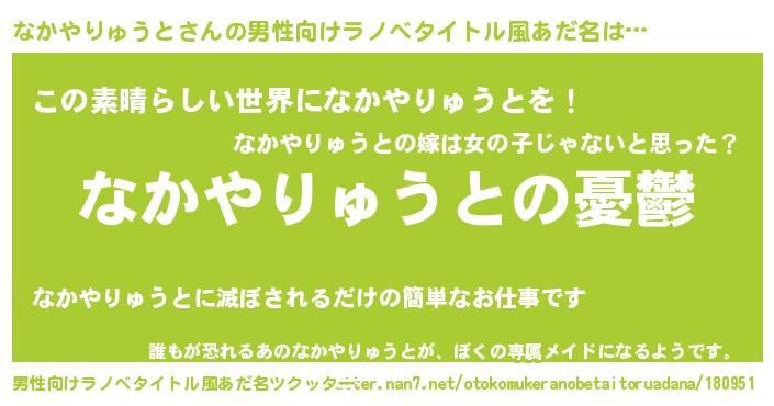 | 胡散臭い通販商品みたいなあだ名 | 『必ず成功する霊験あらたかなお札…その名も「なかやりゅうと」』 |