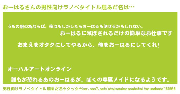 | 女子向けラノベタイトル風あだ名 | 『おーはる恋絵巻』『おーはる伯爵の花嫁』 |