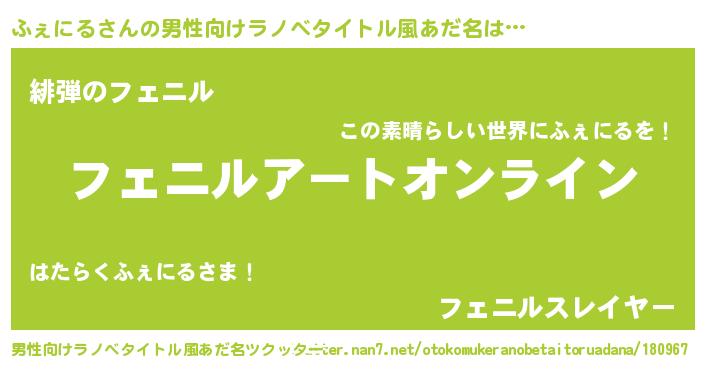 | 胡散臭い通販商品みたいなあだ名 | 『億万長者になれるブレスレット…その名も「ふぇにる」』 |