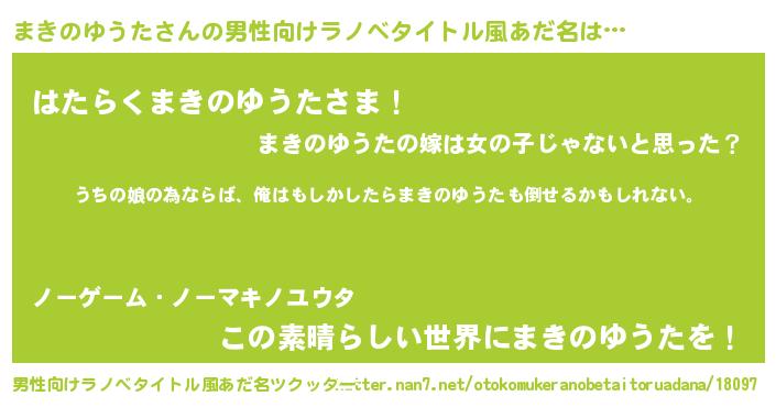 | 女子向けラノベタイトル風あだ名 | 『まきのゆうた伯爵の花嫁』 |