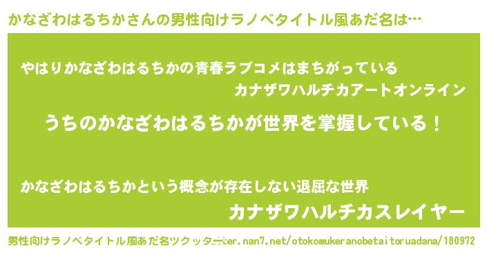 | 意味不明あだ名 | 『かなざわはるちかフォーエバー』 |
