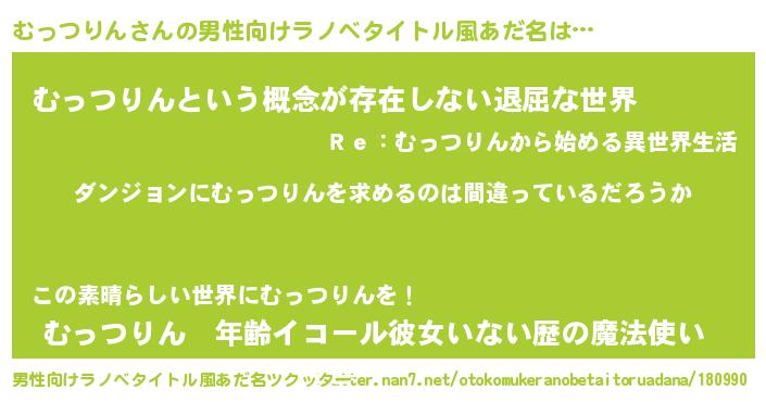 | 女子向けラノベタイトル風あだ名 | 『むっつりんは平凡を望む』 |