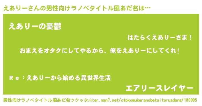 | 女子向けラノベタイトル風あだ名 | 『えありー恋絵巻』 |