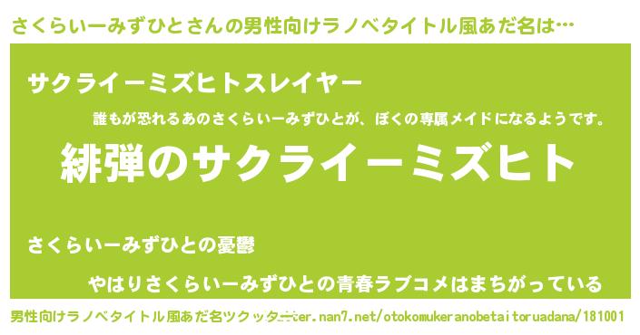 | 女子向けラノベタイトル風あだ名 | 『シンデレラさくらいーみずひと家の靴箱館』 |