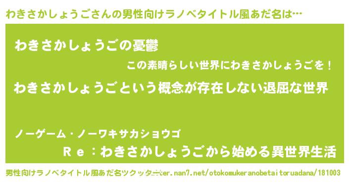 | 胡散臭い通販商品みたいなあだ名 | 『絶対に幸福をもたらす水素水…その名も「わきさかしょうご」』 |
