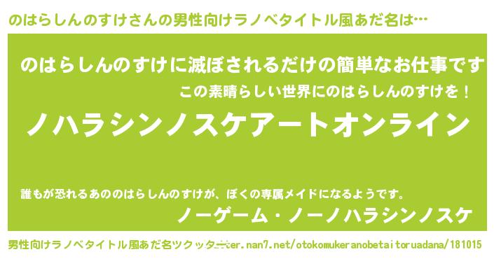 | 胡散臭い通販商品みたいなあだ名 | 『モテモテ間違いなし霊験あらたかなお札…その名も「のはらしんのすけ」』 |