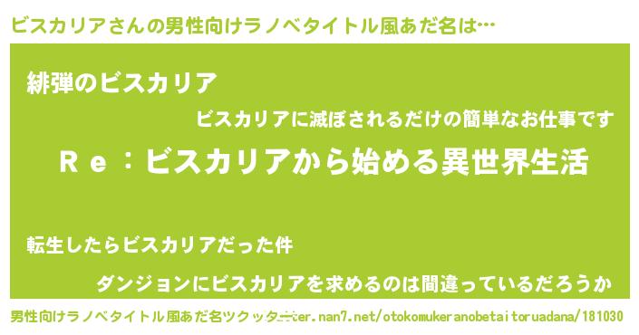 | ヘコむあだ名 | 『ビスっぺ』『ビスカリア(笑)』 |