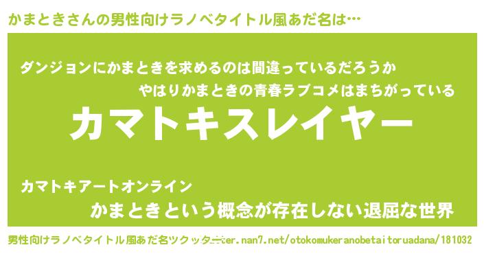 | 胡散臭い通販商品みたいなあだ名 | 『信頼と実績のネックレス…その名も「かまとき」』 |