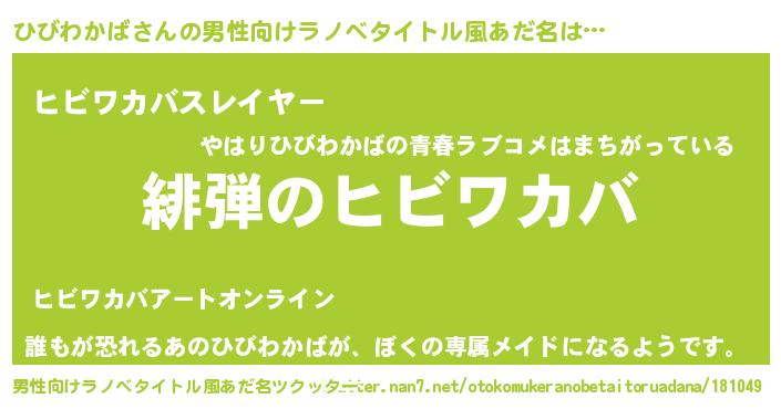 | 胡散臭い通販商品みたいなあだ名 | 『絶対に幸福をもたらす健康食品…その名も「ひびわかば」』 |