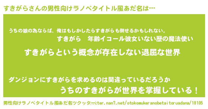 | ヘコむあだ名 | 『すきがら(笑)』『酢こんぶ』 |