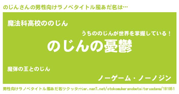 | 女子向けラノベタイトル風あだ名 | 『のじん姫と円卓の騎士』 |