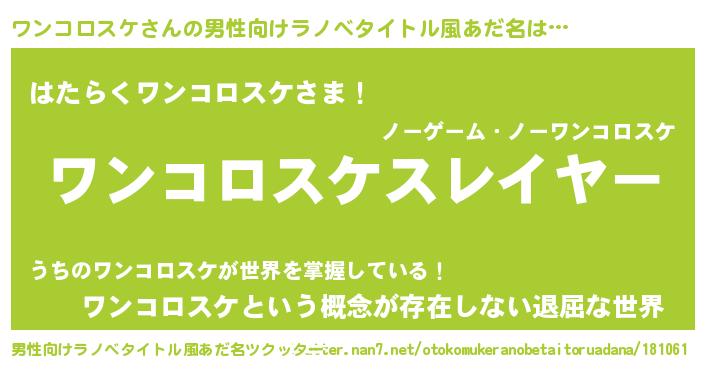 | 胡散臭い通販商品みたいなあだ名 | 『絶対に幸福をもたらす健康食品…その名も「ワンコロスケ」』 |