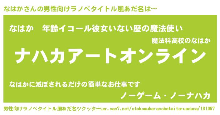 | ヒーロー風カッコイイあだ名 | 『スーパーナハカ』『慈愛の使者なはか』 |