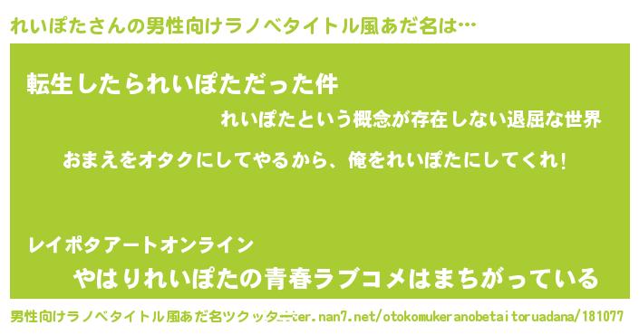 | 伝説のあだ名 | 『人々から恐れられる錬金術士れいぽた』 |