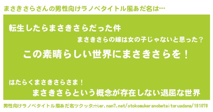 | 意味不明あだ名 | 『住所不定無職まさきさら(91歳)』 |