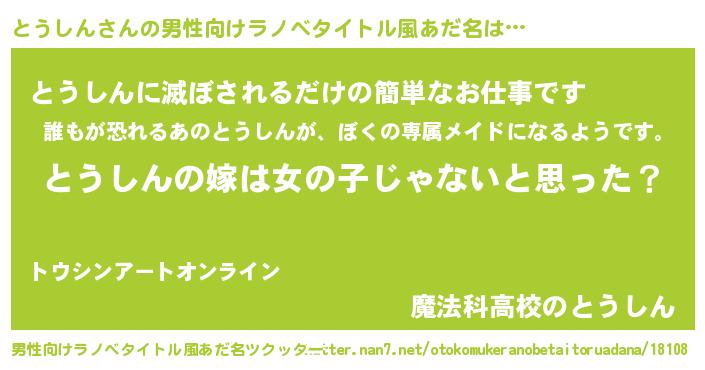 | 女子向けラノベタイトル風あだ名 | 『とうしんの卵を拾いまして』 |