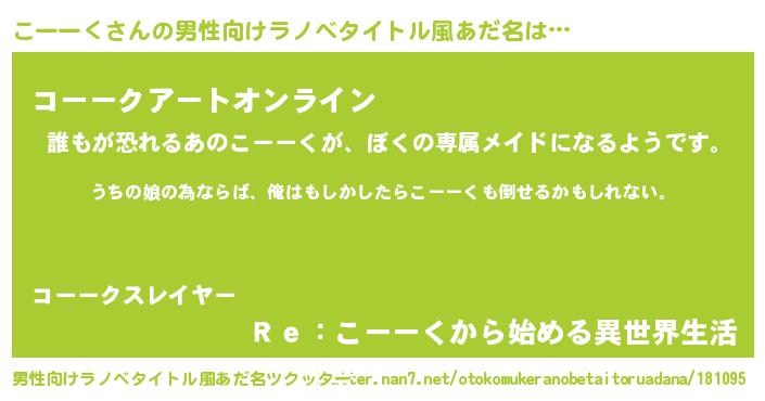 | 胡散臭い通販商品みたいなあだ名 | 『運命の人と巡り会える高級そうな皿…その名も「こーーく」』 |