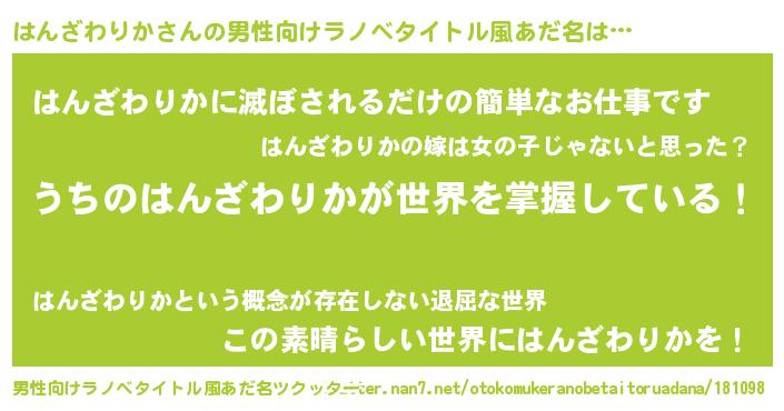 | 意味不明あだ名 | 『住所不定無職はんざわりか(7歳)』 |