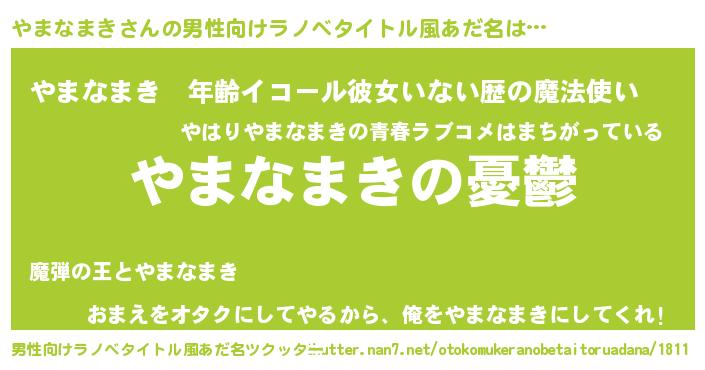 | 女子向けラノベタイトル風あだ名 | 『(仮)やまなまきのやんごとなき事情』 |