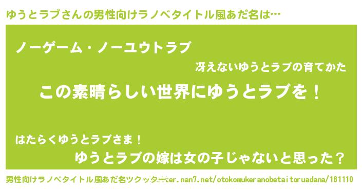 | ヒーロー風カッコイイあだ名 | 『仮面ユウダー』『愛の使者ゆうとラブ』 |