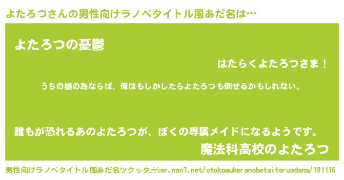 | 意味不明あだ名 | 『よたろつフォーエバー』『自称よたろつ』 |