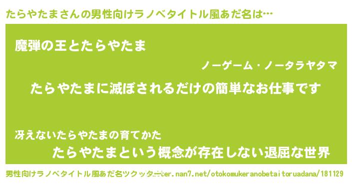 | 意味不明あだ名 | 『住所不定無職たらやたま(95歳)』 |