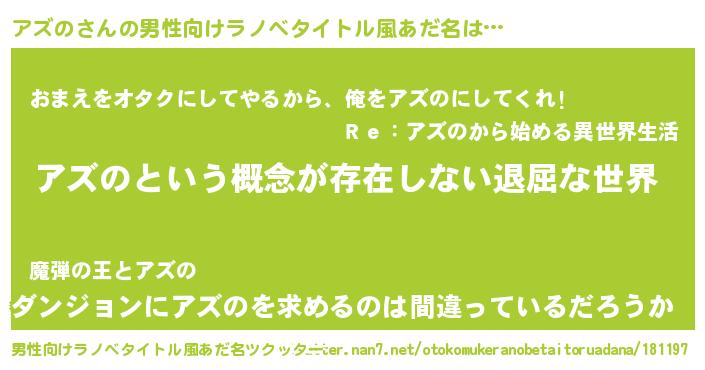 | 女子向けラノベタイトル風あだ名 | 『異世界で失敗しない100のアズの』 |