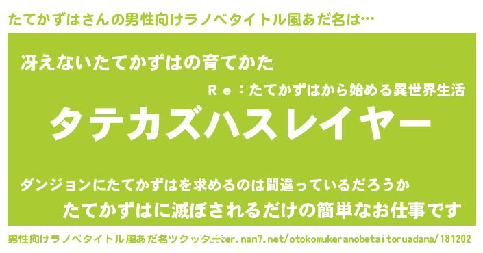 | ヒーロー風カッコイイあだ名 | 『超時空戦士タテカズハ』『幻影騎士タテ』 |