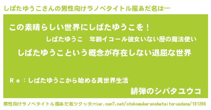 | 女子向けラノベタイトル風あだ名 | 『異世界で失敗しない100のしばたゆうこ』 |