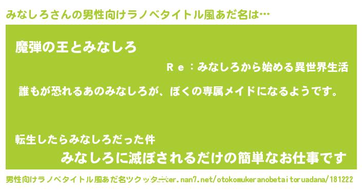 | 意味不明あだ名 | 『永久保存みなしろ』『自称みなしろ』 |