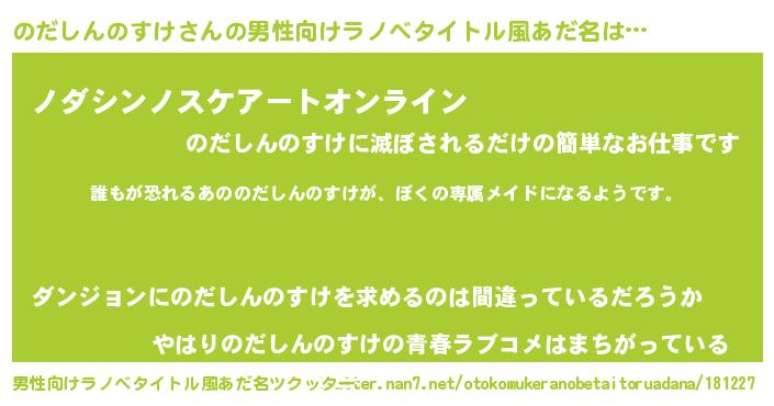 | 胡散臭い通販商品みたいなあだ名 | 『来世でも幸せになれる健康食品…その名も「のだしんのすけ」』 |