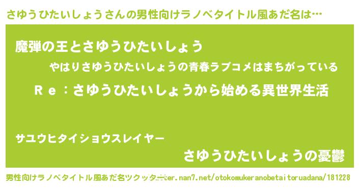 | 意味不明あだ名 | 『自称さゆうひたいしょう』 |
