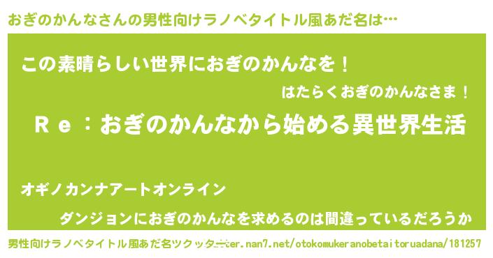 女子向けラノベタイトル風あだ名 | 『おぎのかんなストレイドッグス』 |