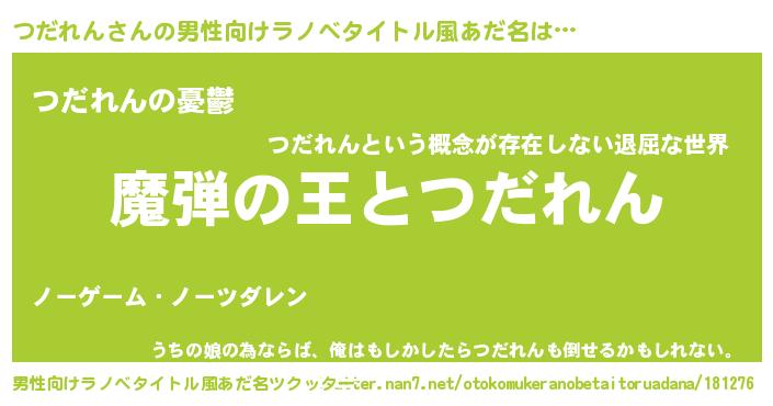 | 女子向けラノベタイトル風あだ名 | 『つだれんが死なない童話 林檎のつだれんの診療簿』 |