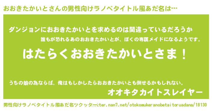 | 胡散臭い通販商品みたいなあだ名 | 『伝統あるサプリメント…その名も「おおきたかいと」』 |