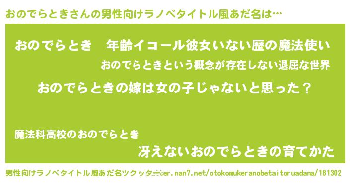 | 女子向けラノベタイトル風あだ名 | 『おのでらとき様がみてる』 |