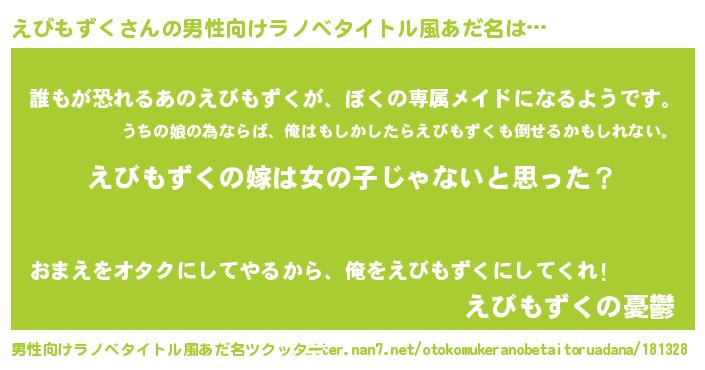 | 女子向けラノベタイトル風あだ名 | 『えびもずく様がみてる』 |