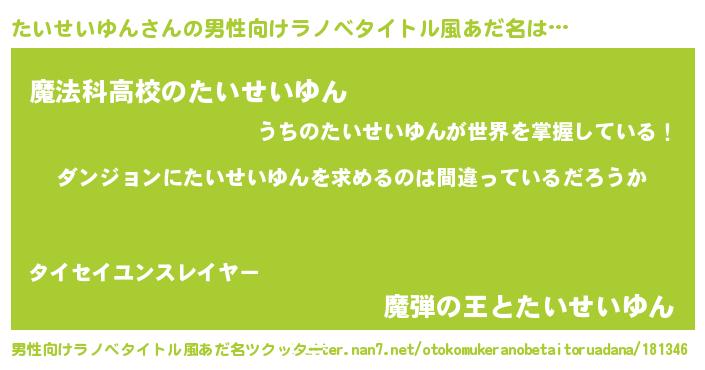 | 女子向けラノベタイトル風あだ名 | 『たいせいゆんは平凡を望む』 |