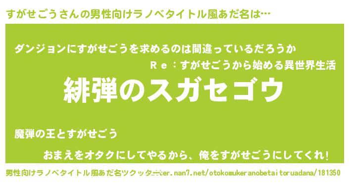 | 胡散臭い通販商品みたいなあだ名 | 『信頼と実績のサプリメント…その名も「すがせごう」』 |