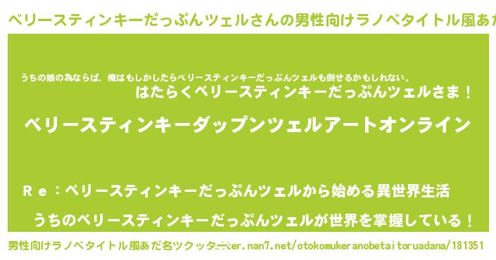 | 女子向けラノベタイトル風あだ名 | 『誰かこのベリースティンキーだっぷんツェルを説明してください! ~契約から始まるウェディング~』 |