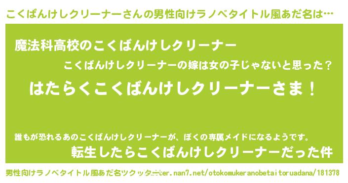 | 胡散臭い通販商品みたいなあだ名 | 『ガンによく効く冬虫夏草…その名も「こくばんけしクリーナー」』 |