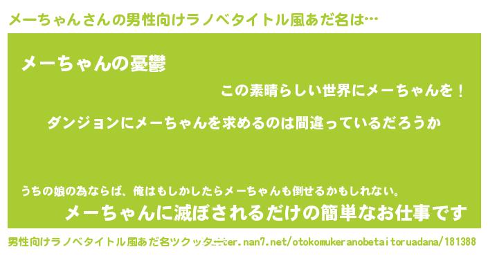 胡散臭い通販商品みたいなあだ名 | 『信頼と実績のネックレス…その名も「メーちゃん」』 |