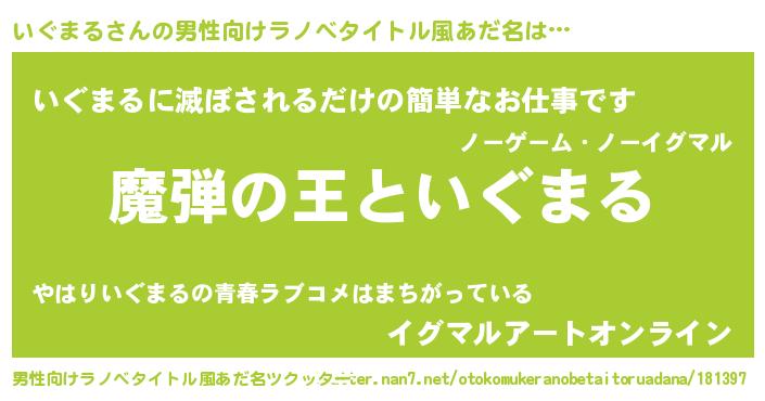 | 意味不明あだ名 | 『住所不定無職いぐまる(7歳)』 |