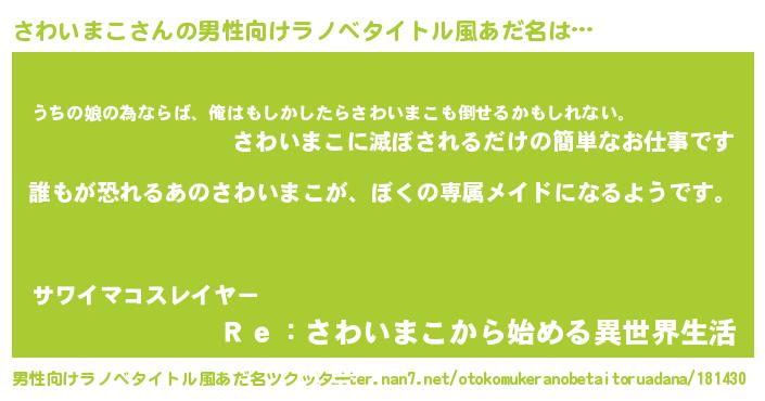 | 意味不明あだ名 | 『永久保存さわいまこ』『自称さわいまこ』 |