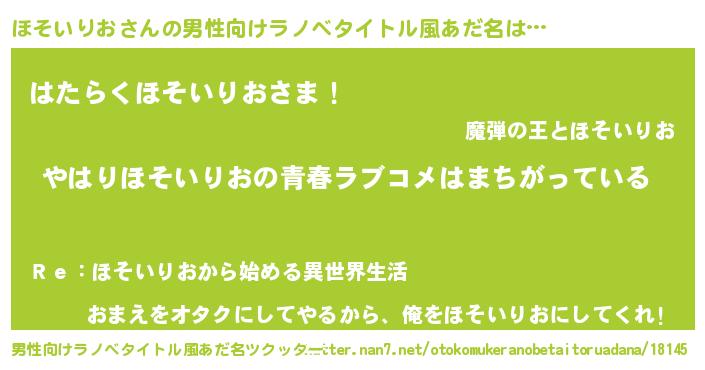 | 意味不明あだ名 | 『ほそいりおフォーエバー』 |