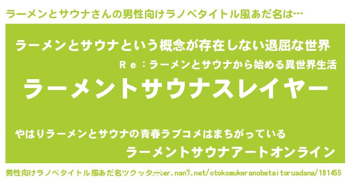 | ヒーロー風カッコイイあだ名 | 『ネオラーメントサウナ』 |