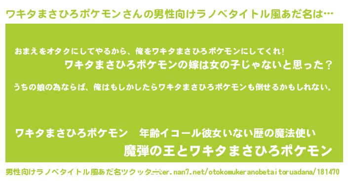 | 女子向けラノベタイトル風あだ名 | 『ワキタまさひろポケモン伯爵の花嫁』 |