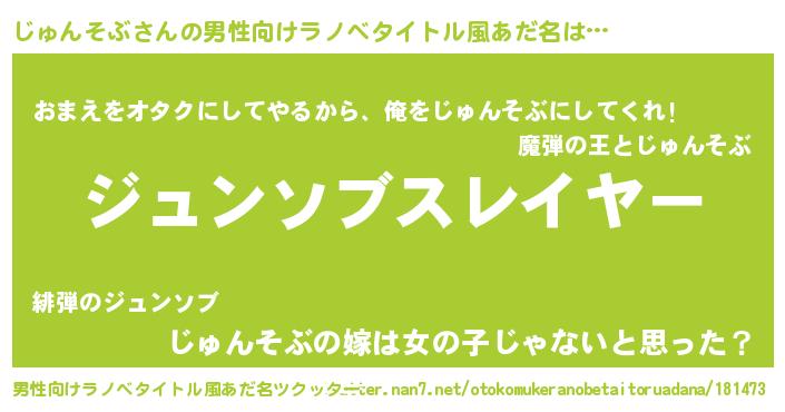 | 胡散臭い通販商品みたいなあだ名 | 『100人中100人が認めたイリジウム磁石…その名も「じゅんそぶ」』 |