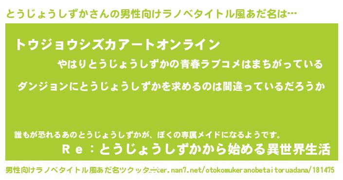 | 意味不明あだ名 | 『とにかく怪しいとうじょうしずか』 |